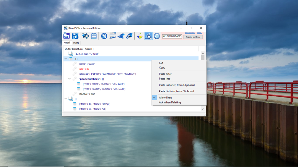 RiverJSON is a Visual JSON editor, beautifier, validator and data modeling tool. You can use it for fast modeling of JSON data payloads and messages connecting various systems and components in a modern web software architecture. JSON syntax can frequently be confusing and error prone. Eliminate the scope for errors and design your data better with RiverJSON.
